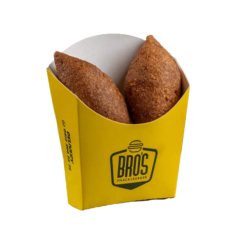 Dos unidades de kibbes acompañados con crema de garbanzo