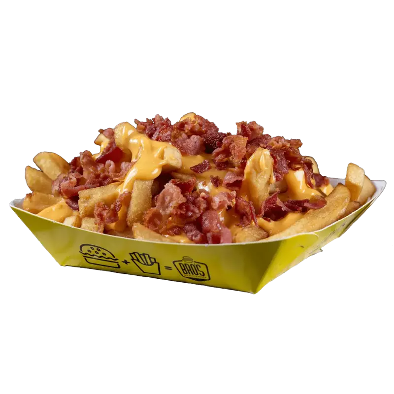 Ración de 200grs de papas fritas con queso cheddar fundido y tocineta crujiente
