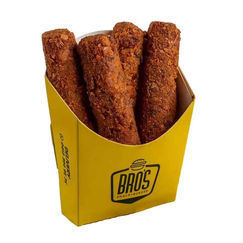 Cuatro unidades de queso mozarella empanizados acompañados con salsa agridulce o salsa napoli